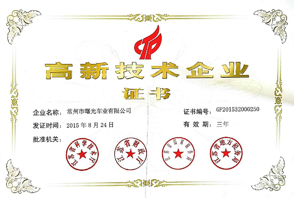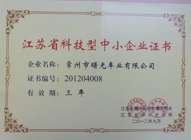 常州市曙光車(chē)業(yè)有限公司被認(rèn)定為“江蘇省民營(yíng)科技企業(yè)”